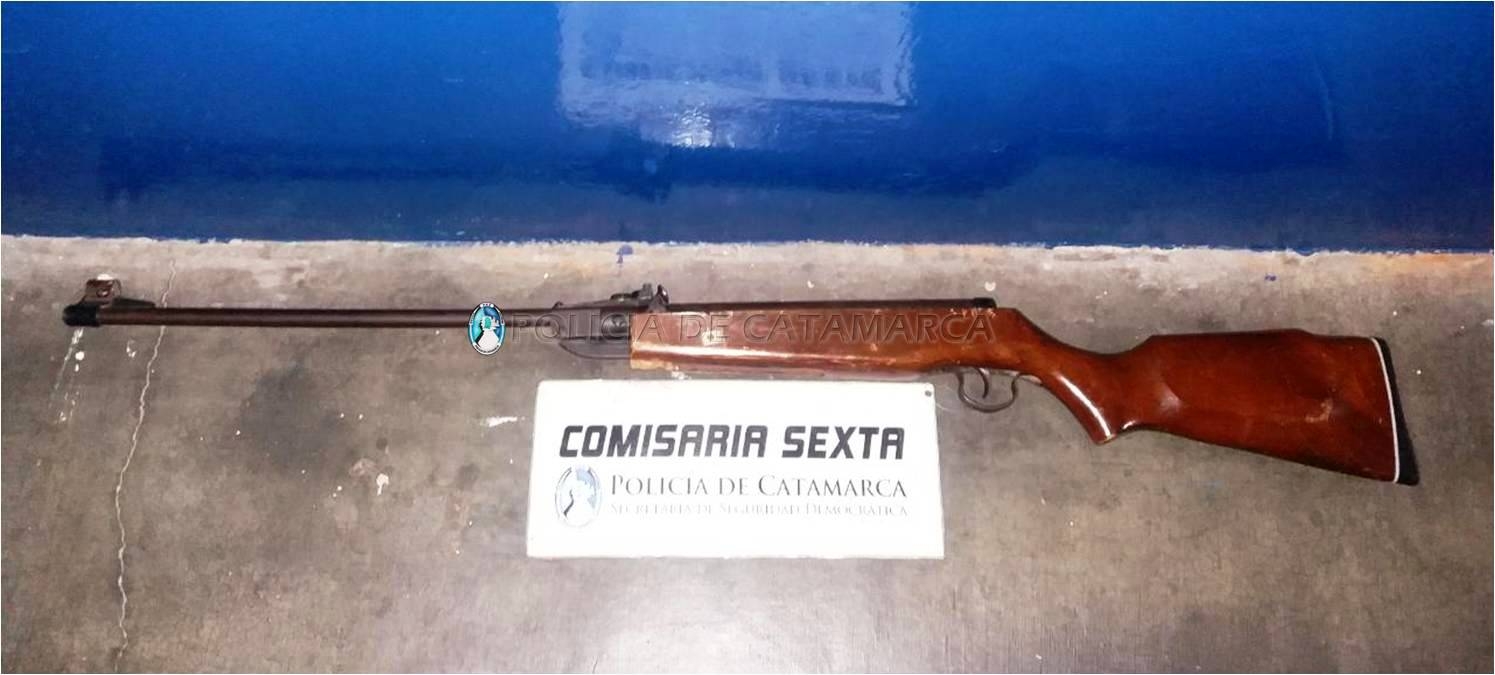 En el lugar, observaron a un sujeto que, al percatarse de la presencia policial, emprendió la huida, dejando abandonado en el lugar un rifle aire comprimido marrón, marca Bicuz, que quedó en calidad de secuestro, hasta determinar su legítima propiedad y procedencia.