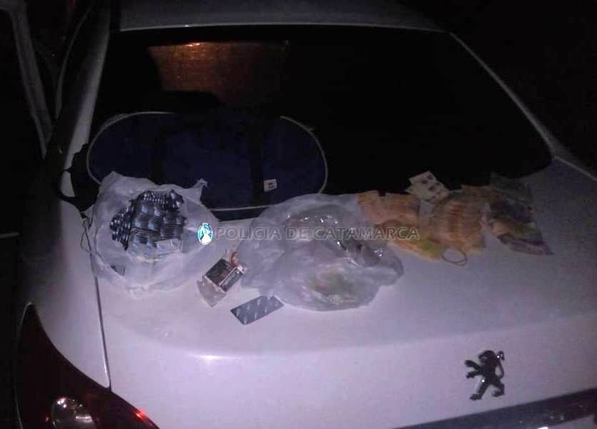 En el lugar, ubicado en la ruta nacional Nº 38, de la localidad de Santa Rosa del departamento Valle Viejo, procedió a controlar un automóvil Peugeot 207, de color blanco, conducido por un hombre de 43 años, en compañía de otro de 46 años.