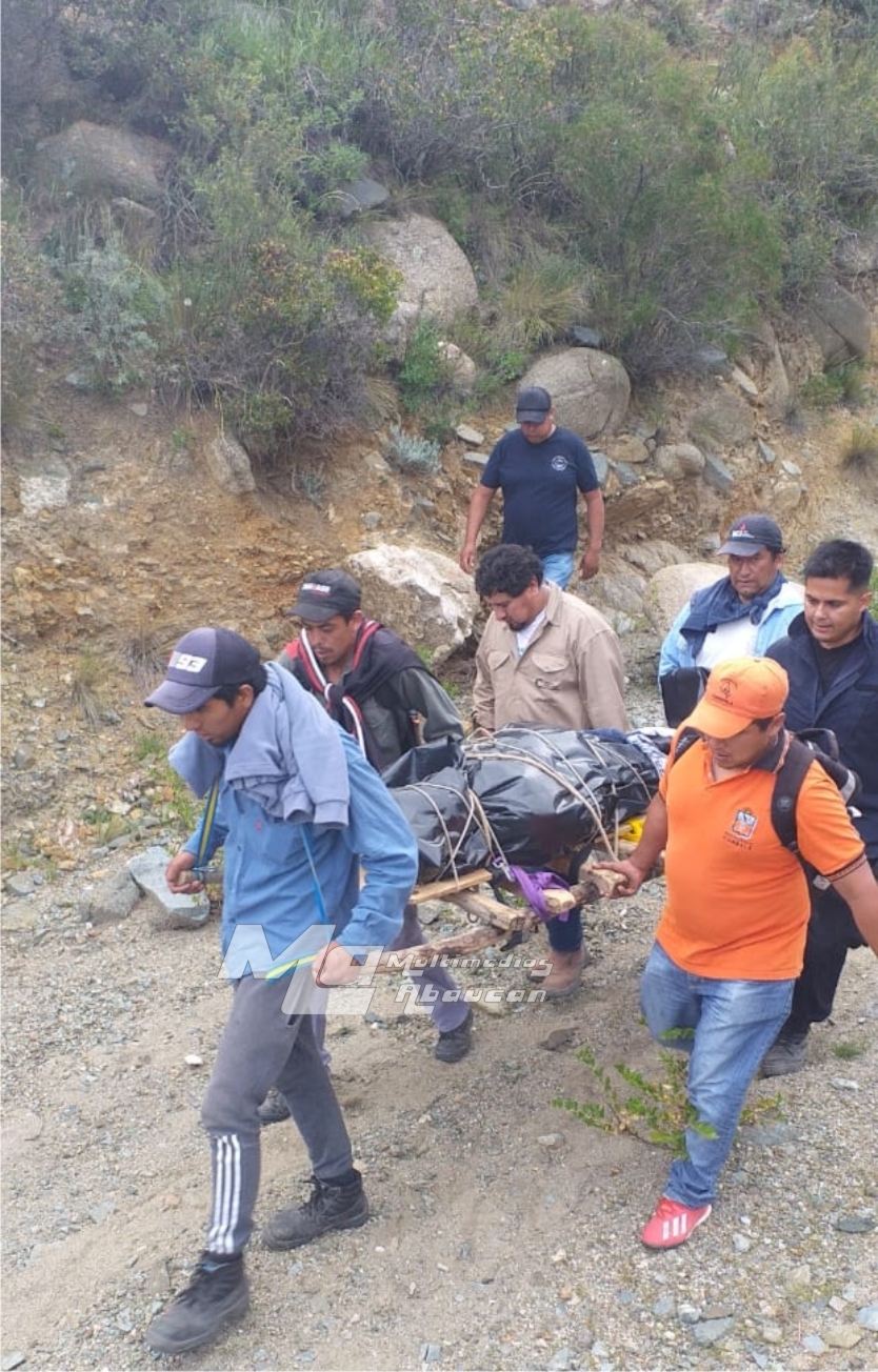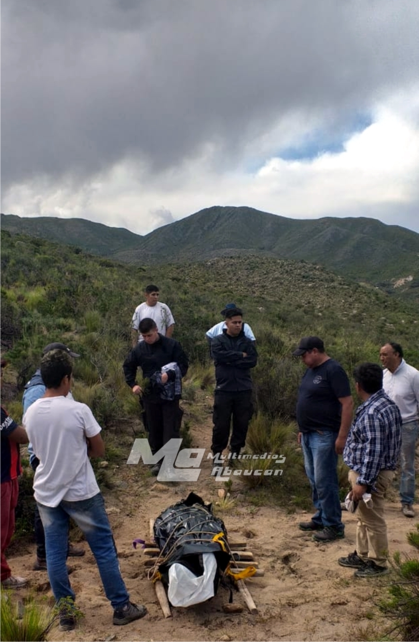 Posterior, a las pericias correspondientes y por orden de la Fiscalía de la 5° Circunscripción, con la colaboración de vecinos bajaron desde el cerro con el cuerpo en una angarilla, debiendo caminar por más de tres horas hasta llegar al lugar donde pueden acceder solamente vehículos 4X4 para luego trasladarlo hacia Palo Blanco.