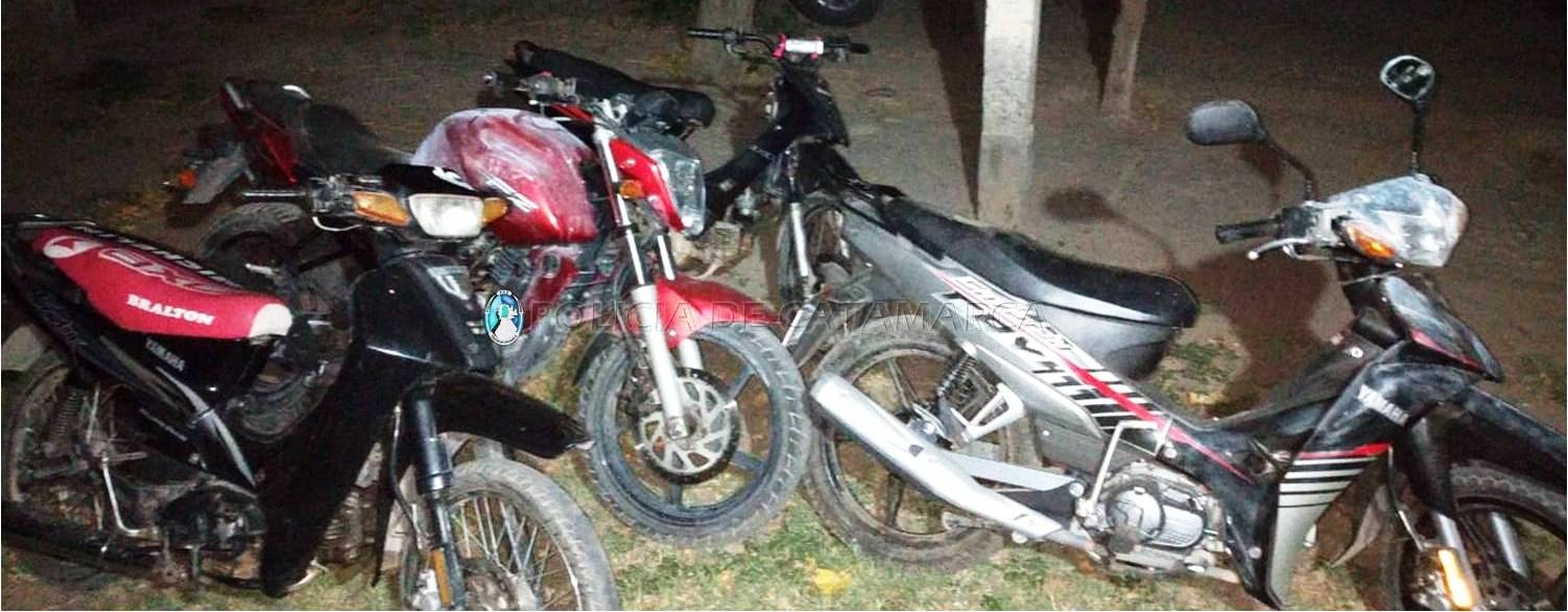 En un inmueble ubicado en el barrio 140 viviendas norte, propiedad de una familia de apellido Palavecino Pachado, los investigadores lograron recuperar una motocicleta Motomel DLX negra 110 cc., una Yamaha FZ roja 160 cc., y dos Yamaha Crypton 110 cc.; una de colores negro, gris y rojo, y la restante negra.