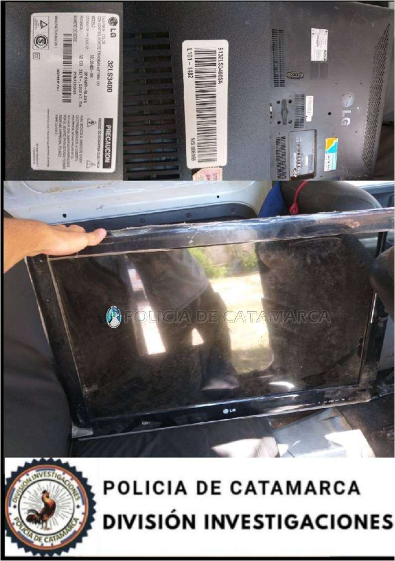 Luego de averiguaciones realizadas en la jornada de ayer, efectivos de la División de Investigación de la Policía llegaron hasta un descampado existente en inmediaciones al barrio 40 viviendas de la localidad de Polcos, departamento Valle Viejo, donde secuestraron el televisor que estaba oculto entre la maleza.