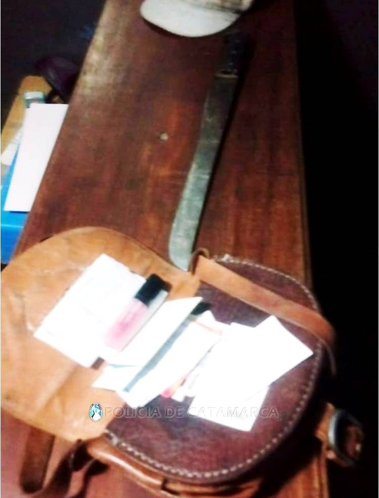 De inmediato, y con las características brindadas, los policías realizaron amplios recorridos por la zona y, en la Manzana “D” del barrio Parque Norte, demoraron a un adolescente de 17 años, quien sería el presunto autor del hecho, y mientras era identificado, habría intentado agredir físicamente con un machete que quedó en calidad de secuestro, al personal interviniente.