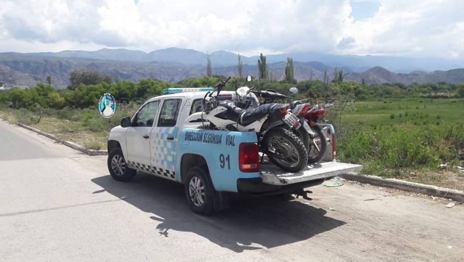 Al finalizar los operativos, los policías procedieron al arresto por una supuesta infracción al Código de Faltas de la provincia, de dos sujetos de apellidos Suarez (35) y Moreno (20), quienes habrían intentado evadir uno de los puestos de control, e incautaron una motocicleta 110 cc., de color azul, en la que circulaban, que fue trasladada a la dependencia policial.