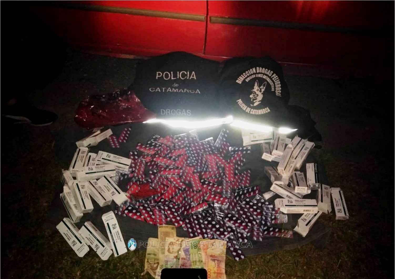 Tras inspeccionar el rodado, con la ayuda de un can adiestrado para detectar estupefacientes, los policías encontraron 1750 comprimidos de Midazolam, 30 comprimidos de Clonazepam y la suma de 32.100 pesos en efectivo, discriminados en billetes de distinta denominación, que quedaron en calidad de secuestro a disposición del Juzgado Federal desde donde se indicaron las medidas a cumplimentar.