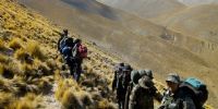 a las 12 horas llegamos al Real “La Chahuanca”, o Real de los Maza, allí un breve descanso y un poco de hidratación, no se podía parar mucho porque lloviznaba y hacía mucho frio, una neblina muy espesa y una llovizna que mojaba hasta los huesos por causa del viento que aventaba todo, a los 4800mnsm comenzamos el ascenso hasta los altos del Overo a 5000msnm, una cima totalmente cubierta y el frio y el viento que se hacían sentir cada vez más, ya no había tiempo de permanecer quietos, solo al refugio de algunas piedras grandes; hasta allí la meta en altura estaba alcanzada, ahora había que buscar la senda para bajar a la base del Overo. Por un momento esa tarea costó, ya que no se podía ver a mas de 5 metros, la llovizna era cada vez más fuerte y la neblina más cerrada. Bajamos con mucha precaución y allí encontramos las pisadas del grupo que había ascendido por la otra punta del cordón montañoso, seguimos descendiendo hasta encontrarnos con ellos en el campamento base, muy bien instalado. De repente una tormenta amenazaba con truenos y relámpagos así que desarmamos todo y partimos hasta el Rio Pizavil, pasamos por el lugar donde había descendido el helicóptero de la Comitiva Presidencial y su posterior rescate, contamos algunas anécdotas y continuamos, no se veía nada alrededor, solo el zumbido del viento en las quebradas; cuando faltaba poco para descender al Rio nos agarro una lluvia muy fuerte, llegamos en la oscuridad, que apenas nos permitió armar el refugio y hacer un poco de fuego con mucho ingenio ya que toda la leña estaba muy mojada; no tardo en llegar un granizo (piedra), que en cuestión de segundos dejo todo el suelo blanco. Otra noche que se durmió como se pudo, todos amontonados ya que el frio, la lluvia y la neblina dominaban todo el espacio.