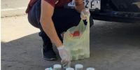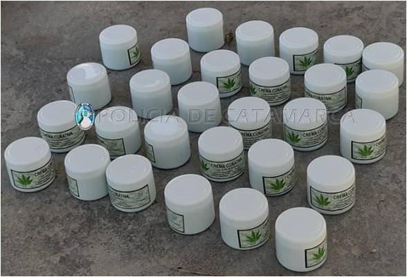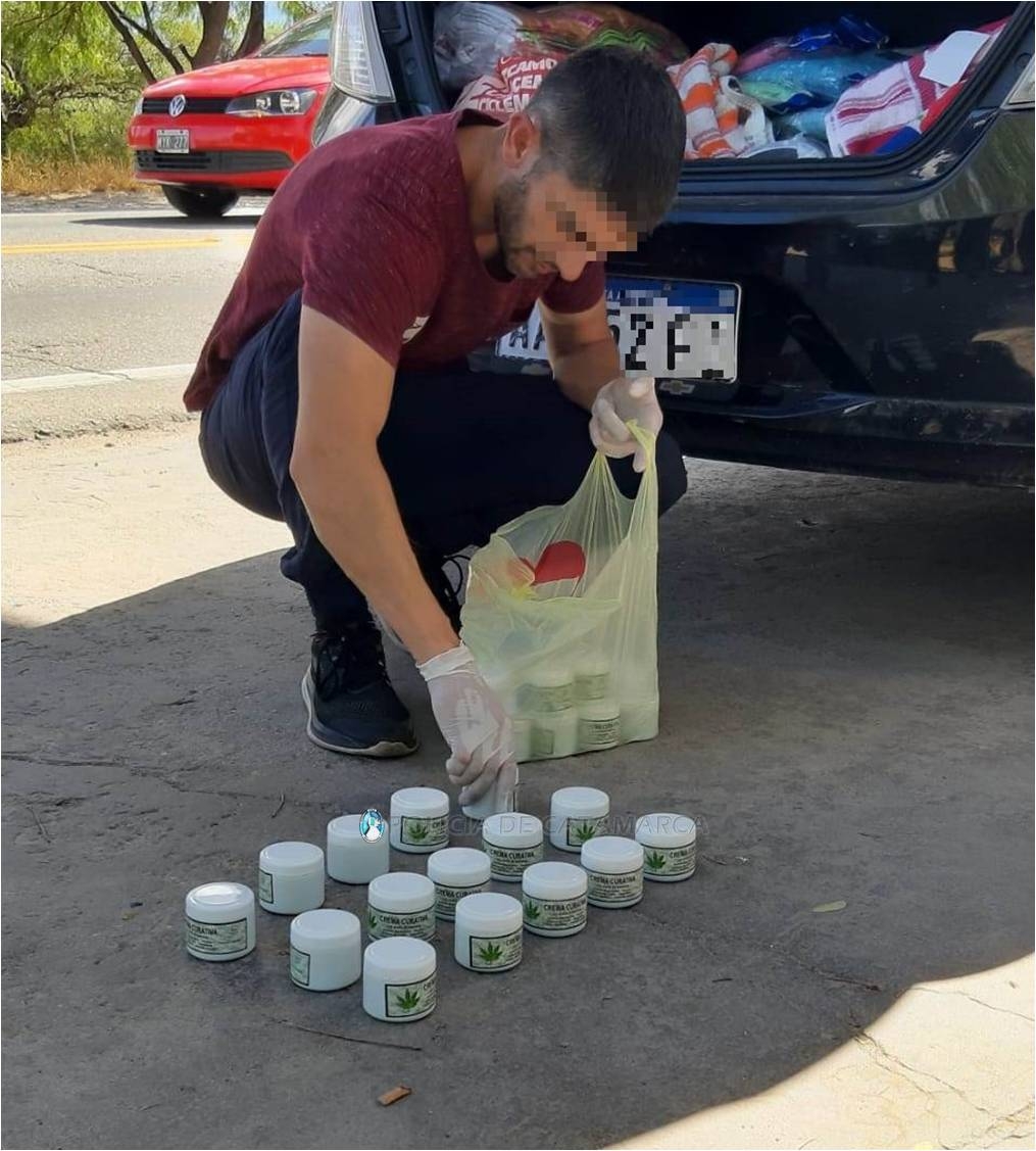 Tras inspeccionar el rodado, los policías observaron que esta persona llevaba en el interior de una bolsa de nylon veintinueve (29) potes de cremas con aceite de cannabis.