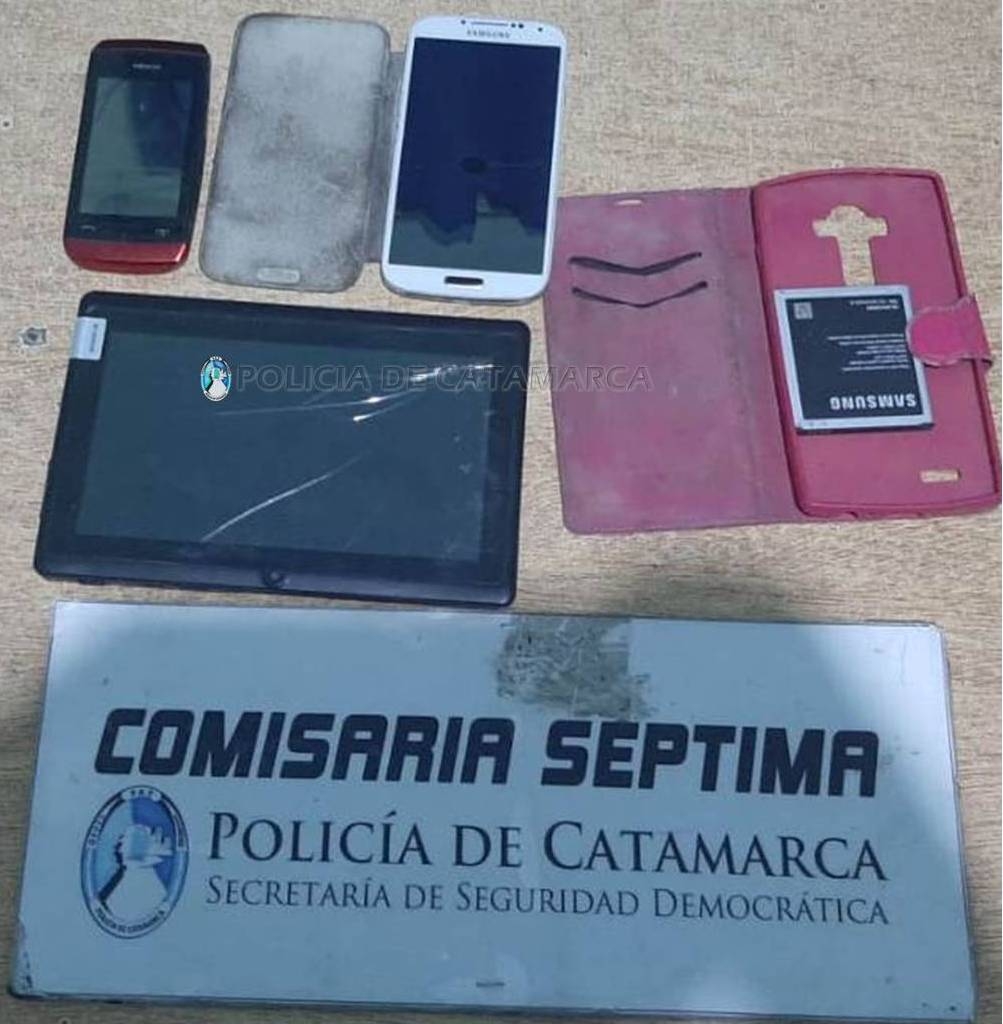 En el lugar, procedió a la aprehensión de un hombre de apellido Bustamante (44), quien habría sido sorprendido ofreciendo a la venta dos teléfonos celulares; un Samsung S-4, de colores negro y blanco, y el restante un Nokia Asha 306 negro y rojo, y una tablet Gadnic negra, que quedaron en calidad de secuestro hasta determinar su legitima propiedad y procedencia.