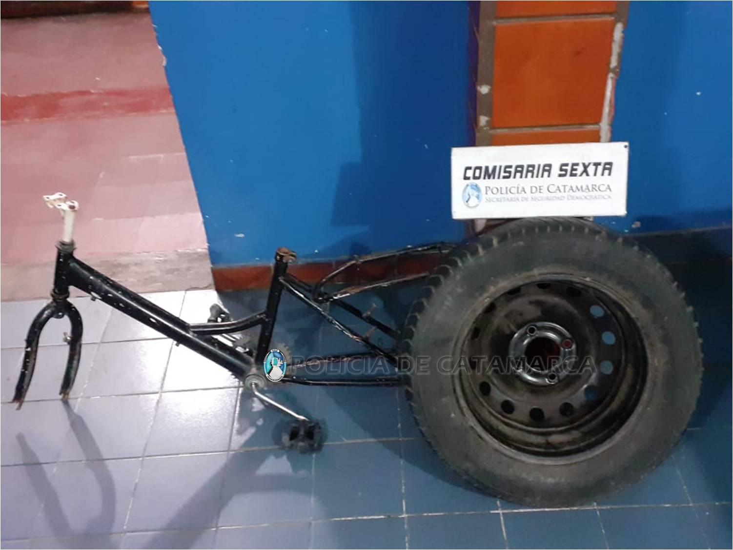 Rápidamente, el personal policial interviniente se constituyó en el lugar y procedió al secuestro de una rueda de auxilio para automóvil, marca Firestone rodado N° 14, y de un cuadro de bicicleta de color negro, que fueron trasladados a la dependencia policial hasta determinar su legítima propiedad.