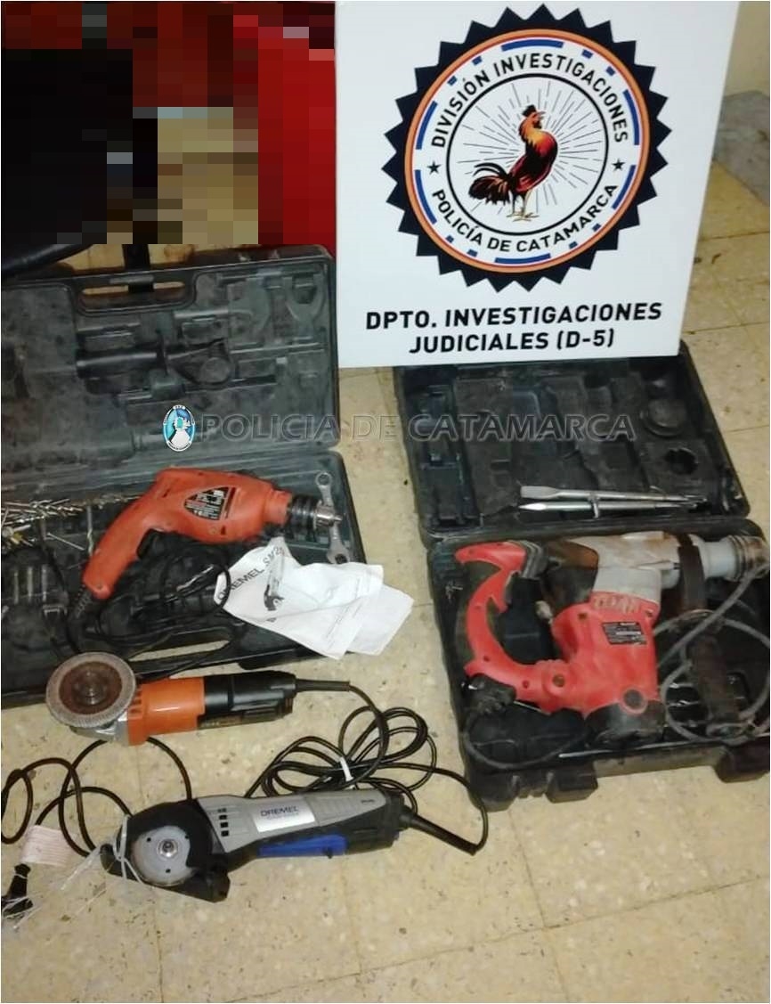 Del lugar, le habrían sustraído un martillo retropercutor marca Einhell, de colores rojo y negro, una amoladora Dremel, de colores gris, azul y negro, otra amoladora de colores anaranjado y negro, marca Black&Decker, y un taladro anaranjado Black&Decker.