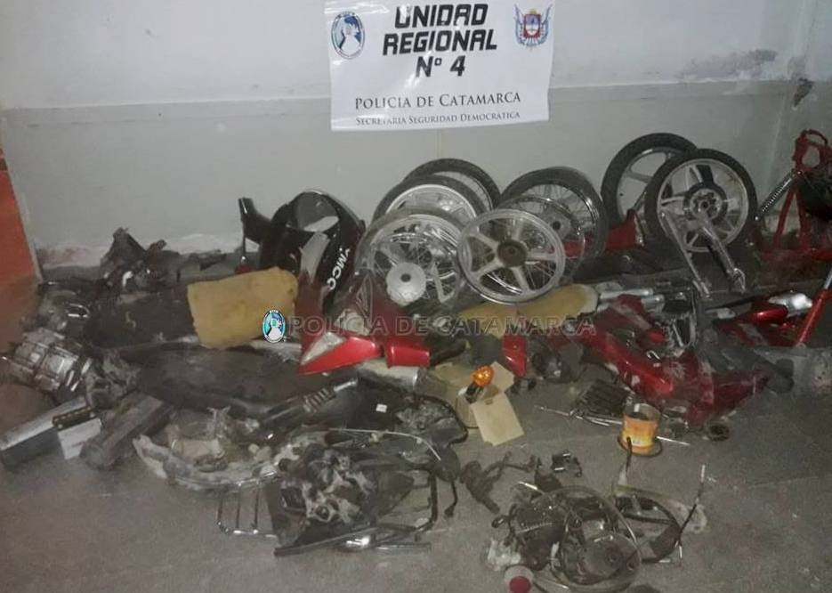 Asimismo, en una vivienda del distrito Malli, propiedad de una familia de apellido Rojas, el personal interviniente secuestró varias motopartes y un cuadro de motocicleta Honda Wave 110 cc., mientras que en un inmueble del Distrito Chaquiago sur, propiedad de la familia Villagra, incautó un motor de Yamaha Crypton 110 cc., que estaba enterrado en la arena, y en una vivienda del distrito El Potrero, donde reside la familia Cardozo, los policías recuperaron una motocicleta Yamaha Crypton 110 cc., totalmente desmantelada y una mochila que en su interior contenía cachas y cables pertenecientes al rodado mencionado.