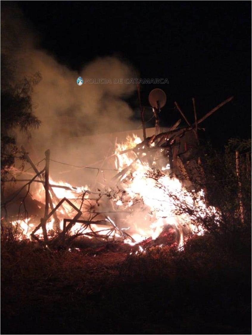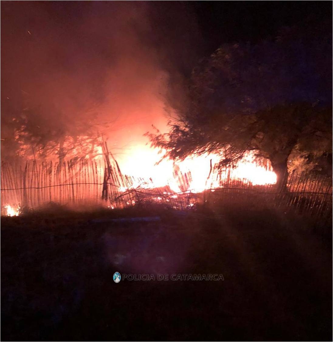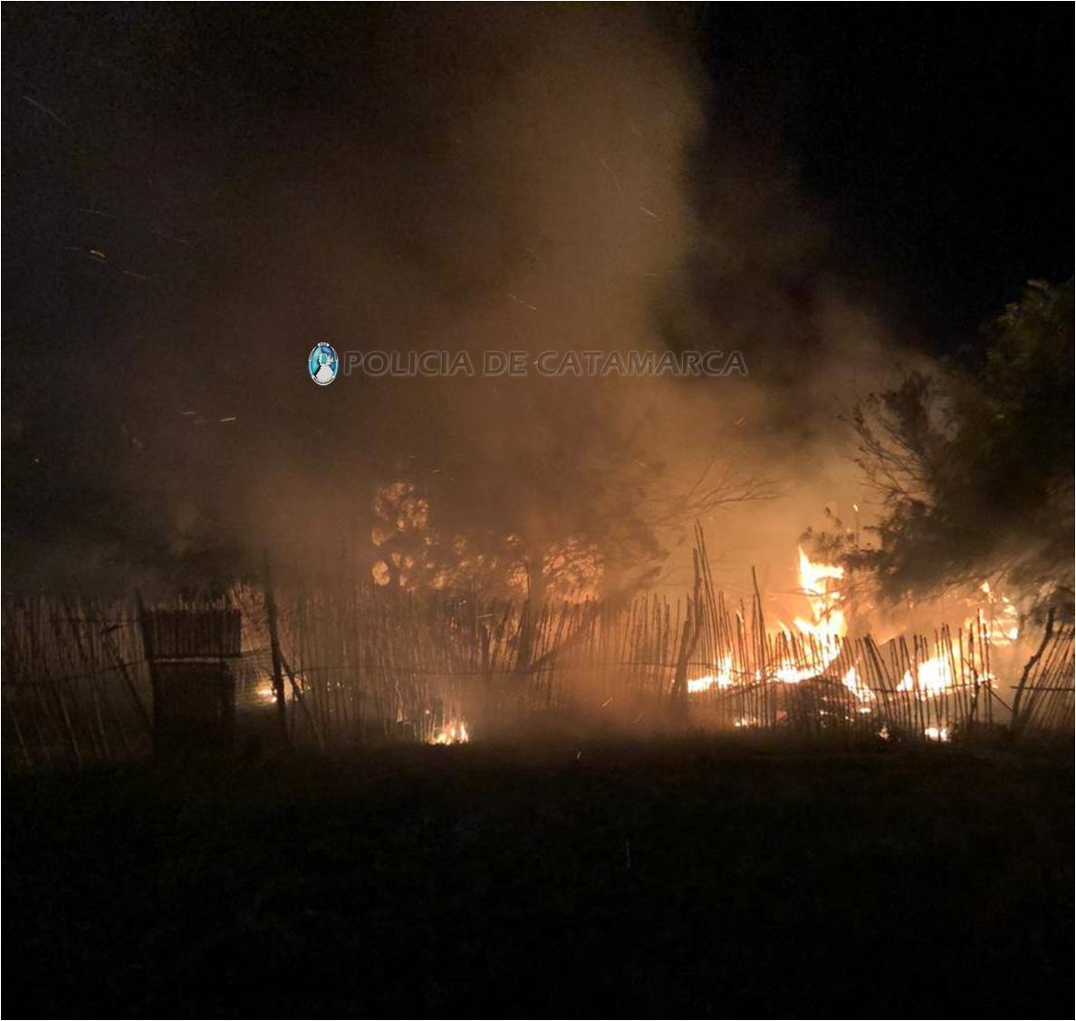 Rápidamente, solicitaron la colaboración de sus pares de la Dirección Bomberos de la Policía de la Provincia, quienes lograron sofocar las llamas que causaron daños materiales totales.