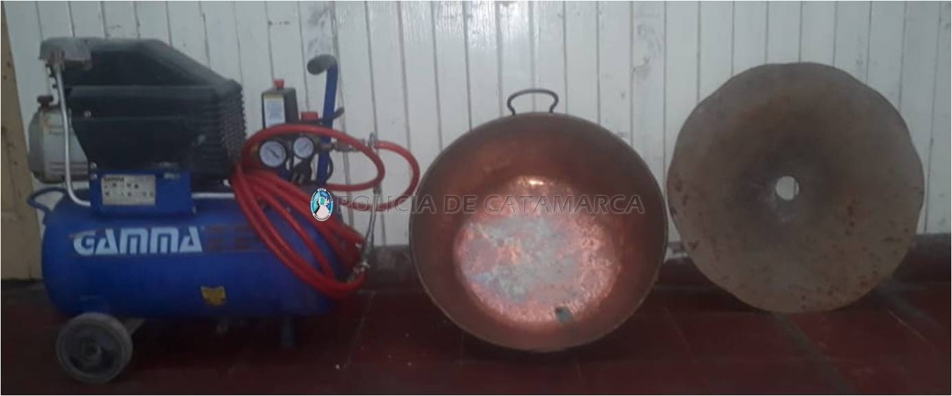 Estas personas hicieron entrega voluntaria al personal policial de la Comisaría Departamental Tinogasta, de un disco de arado, un compresor Gamma de 25 Lts., de color azul, una paila mediana, que quedaron en calidad de secuestro hasta determinar su legitima propiedad y procedencia.