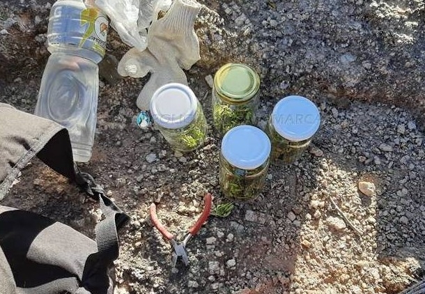La sustancia acusó un peso total de 2,147 Kg. También incautaron cuatro frascos de vidrio vacíos y un teléfono celular Motorola, que estaban ocultos entre la maleza de la zona.
