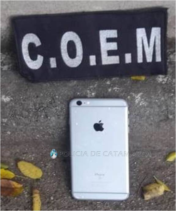 En el lugar, lograron recuperar un teléfono celular IPhone S-6, de color gris, que habría sido sustraído, momentos antes, en inmediaciones a la esquina de las Avenidas Arroyo Fariñango y Alem, mediante la modalidad delictiva de arrebato.