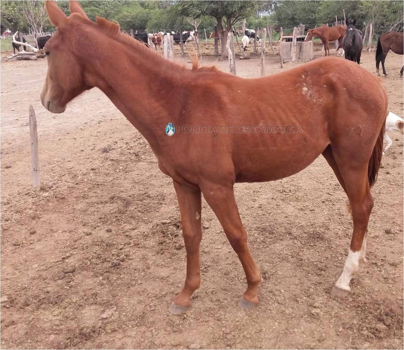 A la altura del kilómetro N° 23, del Paraje Los Puestos, departamento Valle Viejo, procedieron al secuestro de una yegua pelaje tostado listado, crin largo, con miembros posteriores blancos, sin marca de fuego visible, en cumplimiento de lo normado por la Ley Provincial N° 5.594/19.