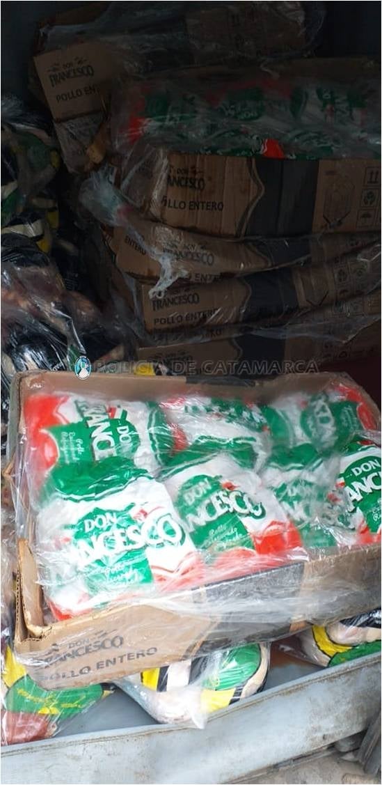 Cabe señalar que, luego de inspeccionar un utilitario Renault Kangoo, de color gris, en el que circulaba un hombre, los policías observaron que transportaba unos 380 Kg. de pollo, sin la cadena de frío y medidas de salubridad e higiene correspondientes.