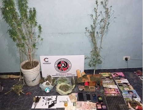 En el lugar y bajo las directivas del Juzgado Federal, a cargo del Dr. Miguel Ángel Contreras, el personal policial interviniente incautó un revólver desarmado Cal. 38 mm, un teléfono celular, una planta de Marihuana de 1,50 metro de altura, tres fertilizantes, 220 semillas de Marihuana, un triturador, 15 revistas sobre el cultivo y cosecha de Cannabis Sativa, y 575 Gr. de Marihuana, que quedaron en calidad de secuestro.