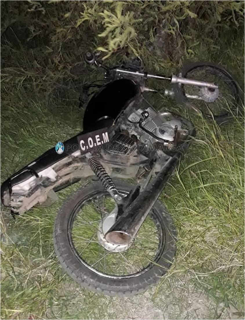 Al llegar al lugar, el personal policial interviniente secuestró una motocicleta Motomel 150 cc., de color negro, que estaba oculta entre la maleza de un descampado.
