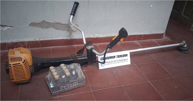 Asimismo, personal de la Comisaría Tercera aprehendió a un joven de apellido Vargas, de 22 años, quien habría sido sorprendido merodeando en actitud sospechosa por la esquina de la Avenida Ramón Recalde y calle Cornelio Saavedra, llevando una motoguadaña GAMA Elite 52 cc., de colores negro, gris y anaranjado, y nueve (09) botellas de licor, que quedaron en calidad de secuestro hasta determinar su legitima propiedad y procedencia, mientras que esta persona fue trasladada y alojada en la Seccional a disposición de la Justicia interviniente.
