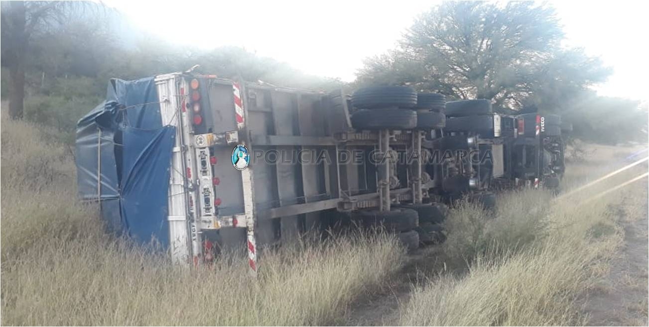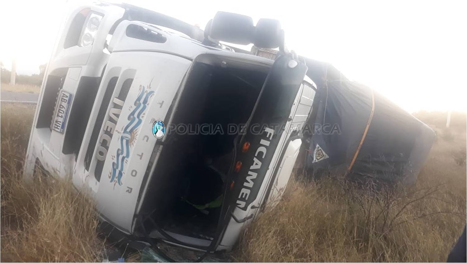 Pablo Sebastián Méndez (39), oriundo de la provincia de Mendoza, circulaba en un camión Iveco 170E28TMLL, dominio AB601VH, de color blanco, con semirremolque dominio EIC-189, en el que transportaba bobinas de hilo, y por causas que se tratan de establecer, perdió el control del rodado y volcó a un costado de la banquina.