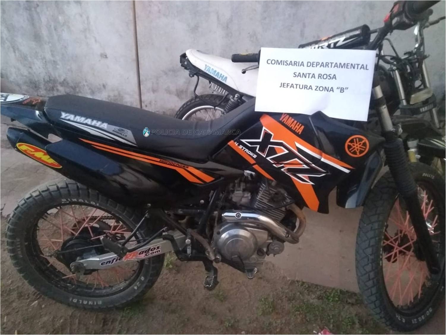En el lugar, procedieron al secuestro de una motocicleta Yamaha XTZ 125 cc., de color negro, en virtud que su conductor infringiera las disposiciones de la Ley Nacional de Tránsito N° 24.449.