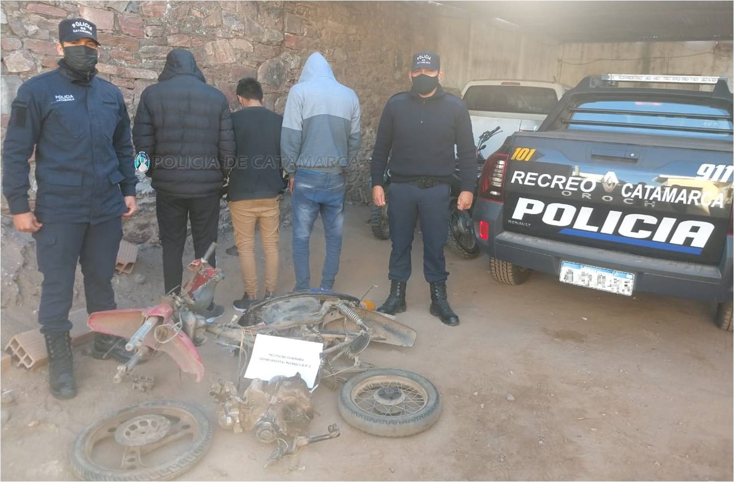 Continuando con la investigación, más tarde, a las 22, en una calle pública, entre los barrios Horminor y San Nicolás, los efectivos procedieron a la aprehensión de otros dos jóvenes de apellidos Aguirre y Oyola, ambos de 19 años, quienes habrían sido sorprendidos llevando las demás motopartes del vehículo, que también fueron incautadas.
