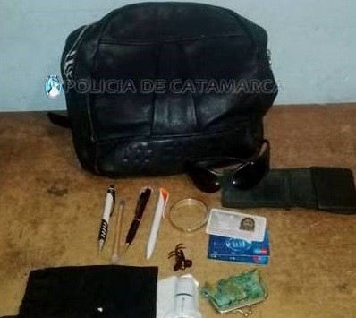 Según denunció, en el bolso había una billetera con documentación varia, un par de anteojos de sol con su respectiva funda, tres lapiceras, un portaminas, un monedero verde, una pulsera de alpaca, una prensa de cabello marrón, y un pendrive blanco marca Livent, para luego darse a la fuga.