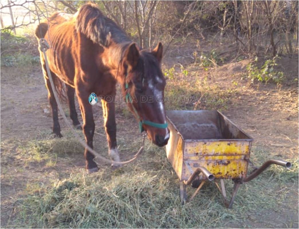 Personal de la División Policía Montada, dependiente de la Dirección de Unidades Especiales de la Policía de la Provincia, fueron convocados al lugar para labrar las actuaciones de rigor, y se informa a los propietarios o responsables del animal secuestrado, que deberán comparecer en un plazo de 24 horas en dicha dependencia policial, ubicada en el predio del Polideportivo Policial, de la ruta nacional N° 38, de esta Ciudad Capital, con la documentación que acredite la legítima propiedad y procedencia del mismo, debiendo abonar la multa por pastaje y mantención.