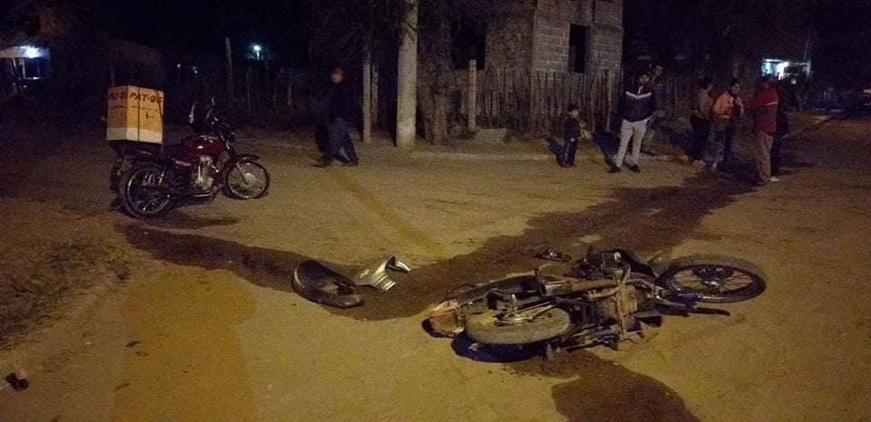 Un niño de 13 años circulaba en una motocicleta Cerro 110 cc., de color gris, en compañía de un adolescente de 17 años, y por motivos que se investigan, colisionó con una motocicleta Honda CG roja 150 cc., dominio 486-CGI, de color rojo, al mando de Renzo Daniel Agüero Aguilera (25).