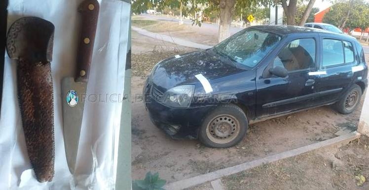 Al momento de la requisa correspondiente, los policías encontraron entre sus pertenencias una cuchilla tipo carnicero mango de madera, que quedó en calidad de secuestro al igual que el rodado.