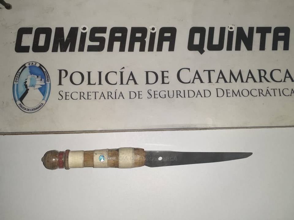 Durante el procedimiento, intentó agredir físicamente al personal policial interviniente con un cuchillo, que quedó en calidad de secuestro, en virtud de lo cual fue alojado en la Seccional a disposición de la Fiscalía de Instrucción en turno, mientras que se invitó a los damnificados a denunciar el hecho en el Precinto Judicial N° 5.