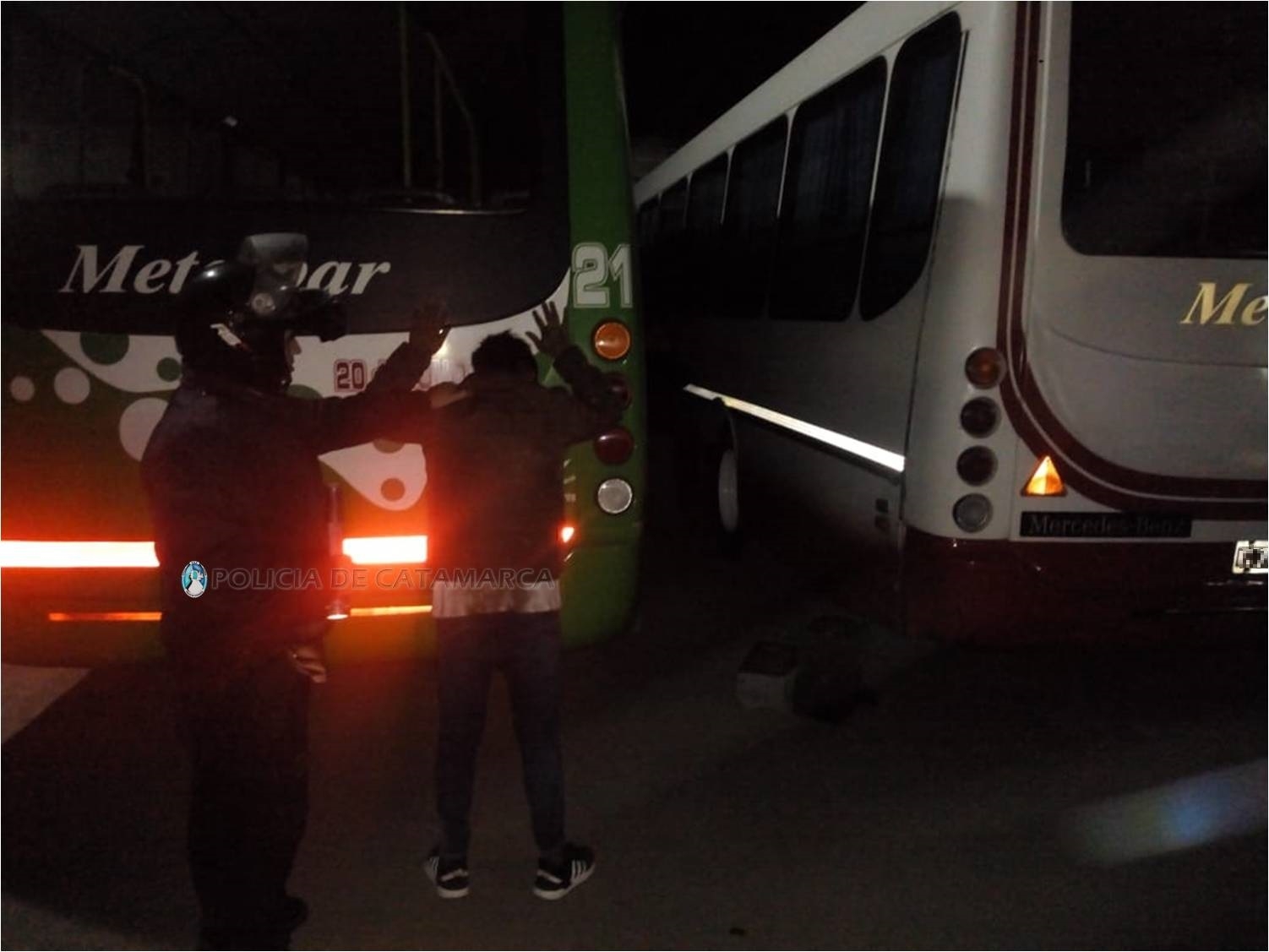 En el lugar, aprehendió a un joven de apellido Cardozo, de 21 años, quien habría sido sorprendido sustrayendo tres parlantes que quedaron en calidad de secuestro, del interior de un colectivo del transporte de pasajeros.