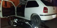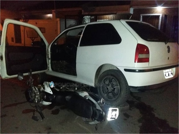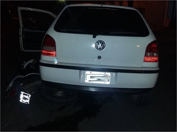 Al llegar al lugar, los Policías aprehendieron a un hombre de apellido Mayorga (35), quien circulaba a bordo de un Volkswagen Gol, de color blanco, y por causas que se tratan de establecer habría embestido a una motocicleta Gilera SMX blanca 200 cc., conducida por un joven de 29 años de edad, en compañía de una joven de 28 años, quien sería la expareja del conductor del automóvil.
