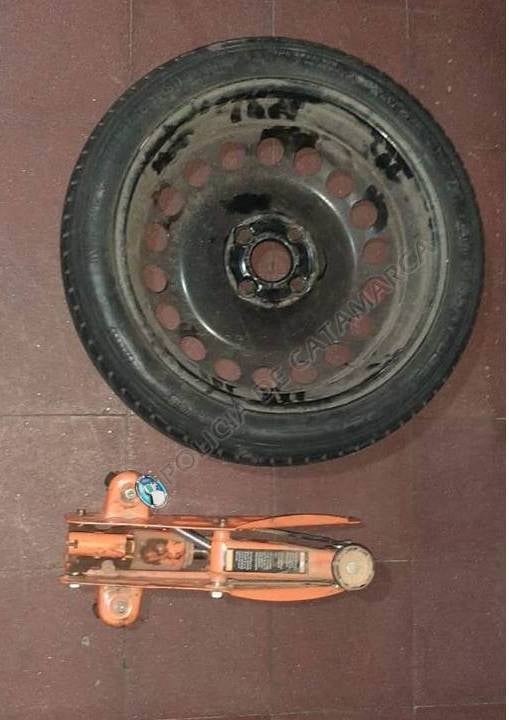 En el lugar, aprehendió a un joven de 22 años, de apellido Guzmán, quien habría sido sorprendido llevando una rueda de automóvil y un gato hidráulico, que quedaron en calidad de secuestro.