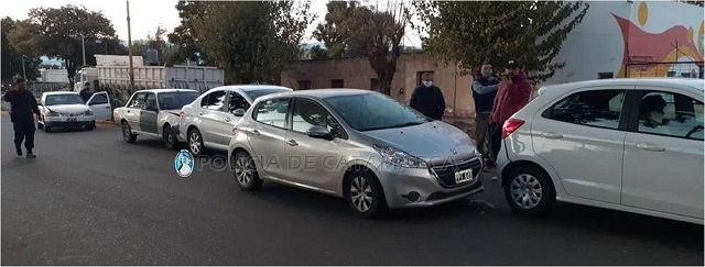 Según informó la policía, en el lugar chocaron un VW Gol blanco, dominio IZM-471, conducido por Matías Ismael Agüero (24), un Peugeot 505, dominio WSC-251, de color gris, al mando de José Ginés Robledo (42), un Peugeot 408 gris, dominio AA312KB, en el que circulaba Luis Alberto Godoy (56), un Peugeot 208, dominio PPT-649, de color gris, manejado por María del Valle Delgado (47) y un Ford Ka blanco, dominio AD939UK, en el que circulaba Joaquín Ismael Agüero (28), en compañía de María Magdalena Bonader (56).