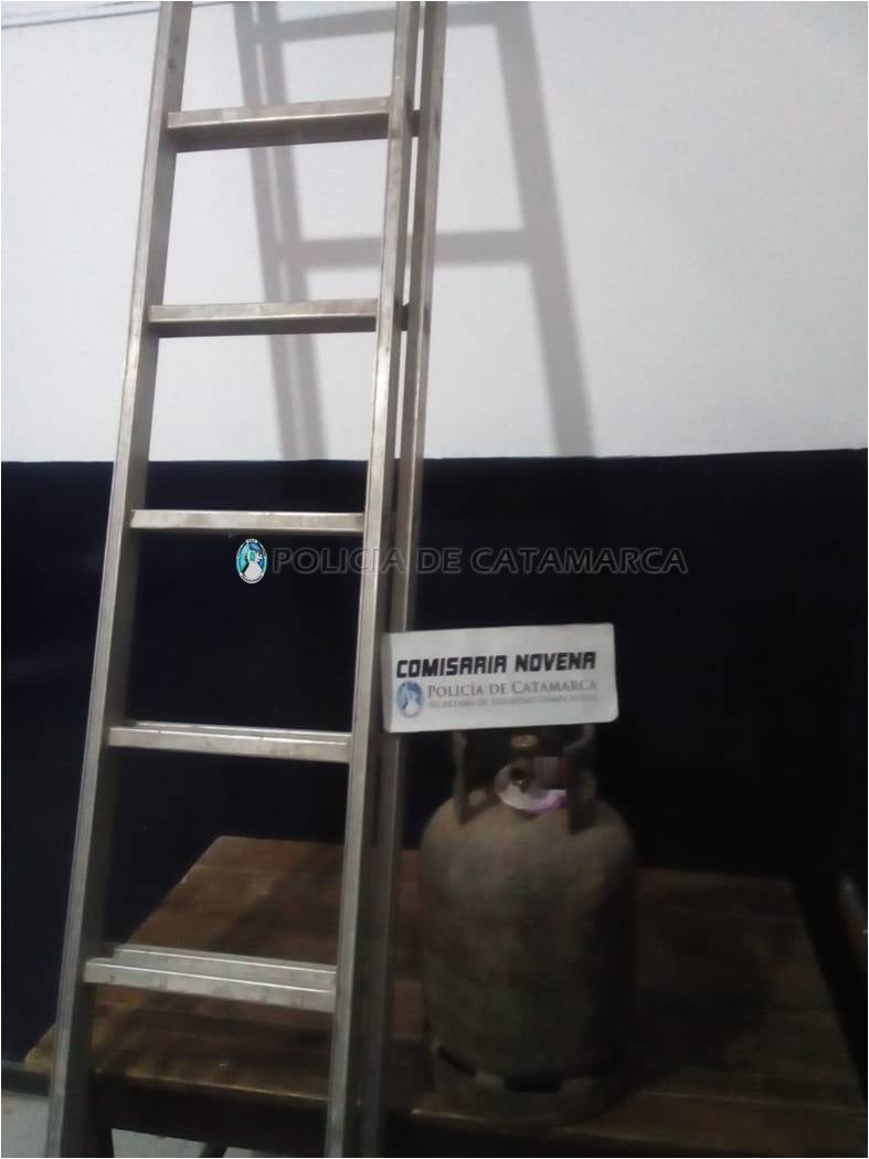 En inmediaciones al barrio 14 viviendas sur, observaron en un descampado de la zona a dos sujetos llevando una escalera de metal y una garrafa de gas de 10 Kg., y al percatarse de la presencia policial, emprendieron la fuga, dejando abandonados los elementos en el lugar.