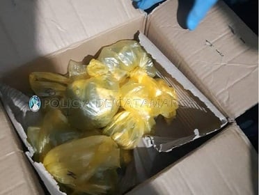 Al inspeccionar el rodado, los efectivos encontraron 1,045 Kg. de Marihuana, distribuida en 50 envoltorios de nylon, dos teléfonos celulares, varios recortes de nylon, boletas de encomiendas de interés para la causa, y la suma de $4.315.