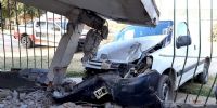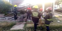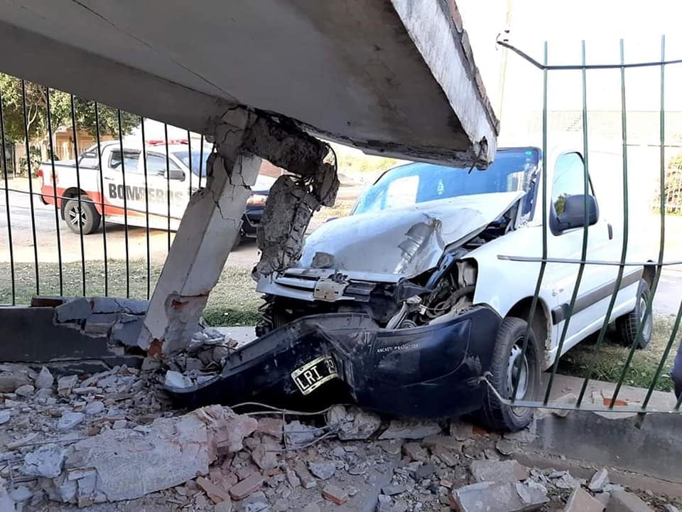 Los Bomberos Voluntarios de Valle Viejo llegaron en la tarde del domingo al lugar del accidente, en el Barrio Hipotecario El Bañado, donde una camioneta Peugeot Partner chocó e ingresó a la casa N°13.