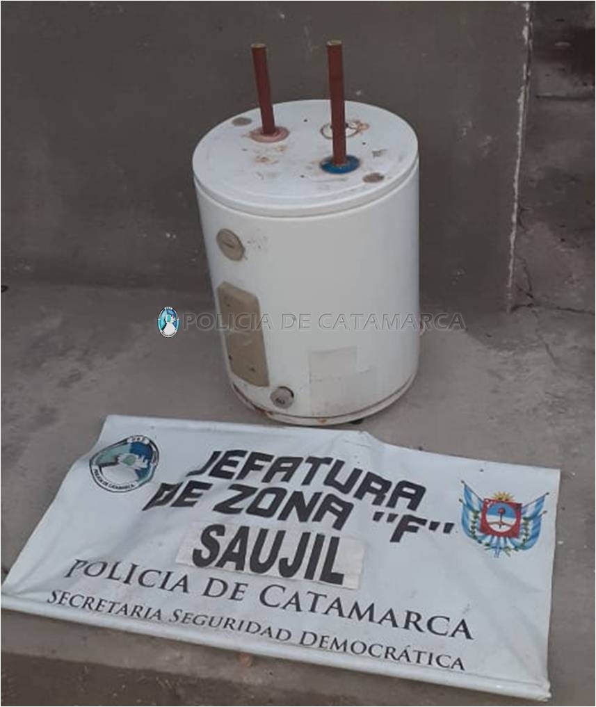 Allí, procedió al arresto en averiguación del hecho de dos personas del sexo masculino de apellidos Ogas (19) y Solohaga (30), quienes fueron sindicados como los presuntos autores de la sustracción de un termotanque, de color blanco, de un domicilio del barrio 30 viviendas de dicha localidad, propiedad de la familia Reyes.