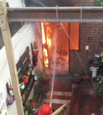 Hoy, a las 17:30, por requerimiento del Comando Radioeléctrico, personal de la Comisaría Primera se constituyó en una vivienda de la calle Salta al 1.100, propiedad de una familia de apellido Miranda, donde se estaba produciendo un incendio.