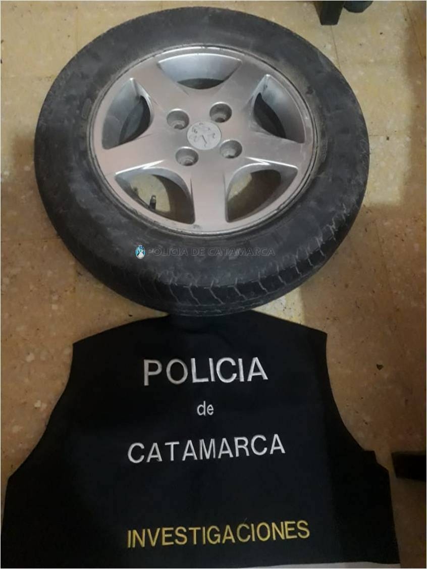 Al notar la presencia policial, emprendieron la fuga por lo que se inició una persecución por distintas arterias y, al llegar a la Avenida Sal Gema, inmediaciones al Predio del Club Atlético Policial, arrojaron la rueda a un descampado de la zona, para continuar la huida.