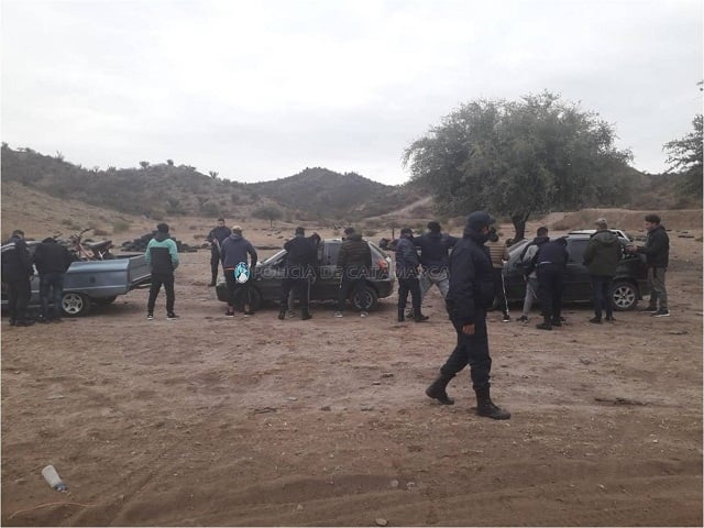 En el lugar, el personal policial interviniente, conjuntamente con sus pares de la Subcomisaría de San Antonio y de la Patrulla de Prevención Motorizada (PAMPA), procedió a la aprehensión de nueve personas del sexo masculino de entre 20 y 28 años, y a la demora de un adolescente de 17 años, en tanto que otro grupo de personas logró darse a la fuga por un descampado de la zona.