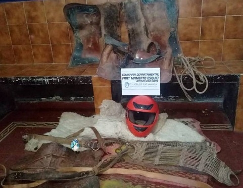 En el lugar, los Policías procedieron al secuestro de una silla de montar, dos cinchas, un freno, tres pellones, dos sobrepelos, un asco para motocicleta, una carona, y un sobre puesto, que estaban ocultos entre la maleza, en virtud de lo cual se dio intervención a la Fiscalía de Instrucción en turno, desde donde se indicaron las medidas a seguir.