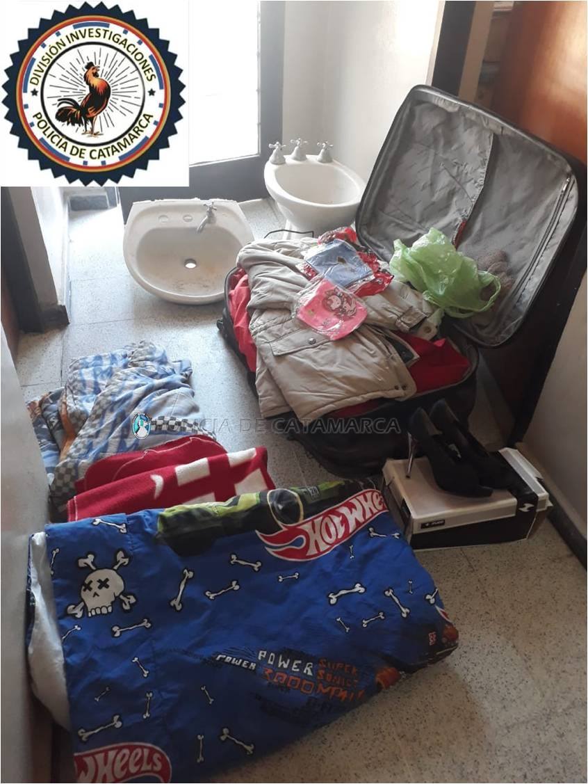 En los inmuebles, los policías lograron recuperar un bidet blanco, una bacha de color blanco, tres colchas polares, un par de zapatos de dama, y una valija con varias prendas de vestir de mujer, que quedaron en calidad de secuestro a disposición de la Justicia Interviniente, mientras que los moradores fueron supeditados a la prosecución de la causa.