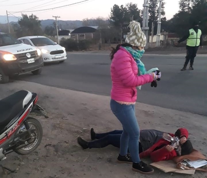 La mujer debió ser asistida en el lugar por las lesiones que sufrió al caer de la moto.