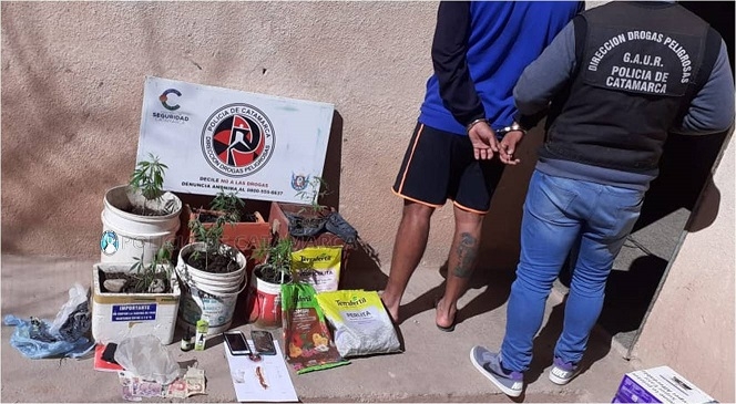 En el lugar, los Policías secuestraron 7 plantines de entre 10 y 30 cm. de marihuana que estaban siendo cultivados; 10 semillas de la misma variedad, 1 frasco de aceite de Cannabis, bolsas de fertilizante, 15 recortes de nylon de diferentes colores y tamaños, 1 libreta con anotaciones de interés para la causa, $480 pesos en efectivo, y 2 teléfonos celulares, ambos marca Samsung.