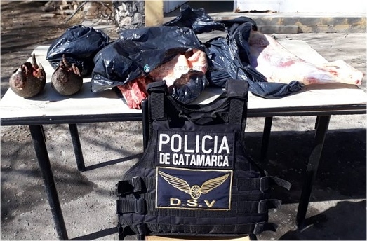 Al inspeccionar el rodado, los Policías observaron que en el interior del baúl llevaba aproximadamente unos 30 Kg. de carne vacuna, carne caprina, y dos quirquinchos, sin la cadena de frío y medidas de salubridad e higiene correspondientes, en virtud de lo cual solicitaron la presencia de sus pares de la División Abigeato de la Policía de la Provincia y de personal de la Dirección Provincial de Biodiversidad, quien labró las actuaciones de rigor.