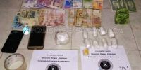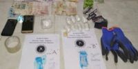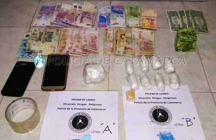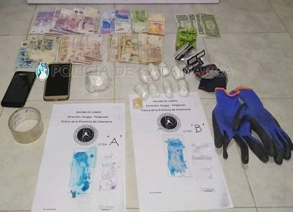 En los inmuebles, los Policías procedieron al secuestro de diez envoltorios de nylon que contenían una sustancia tipo polvo, los cuales fueron sometidos a la prueba de campo correspondiente, y se logró determinar que se tratarían de 273 Gr. de Cocaína; tres teléfonos celulares, dos marca Motorola y el restante SKY; un frasco con crema de Cannabis Sativa; tres paquetes de papel de seda; 3 recortes de nylon; 1 envoltorio de nylon transparente con una dosis de Marihuana; 1 cigarrillo de armado casero con la misma sustancia; $4.050; dólares estadounidenses y un par de guantes azules.