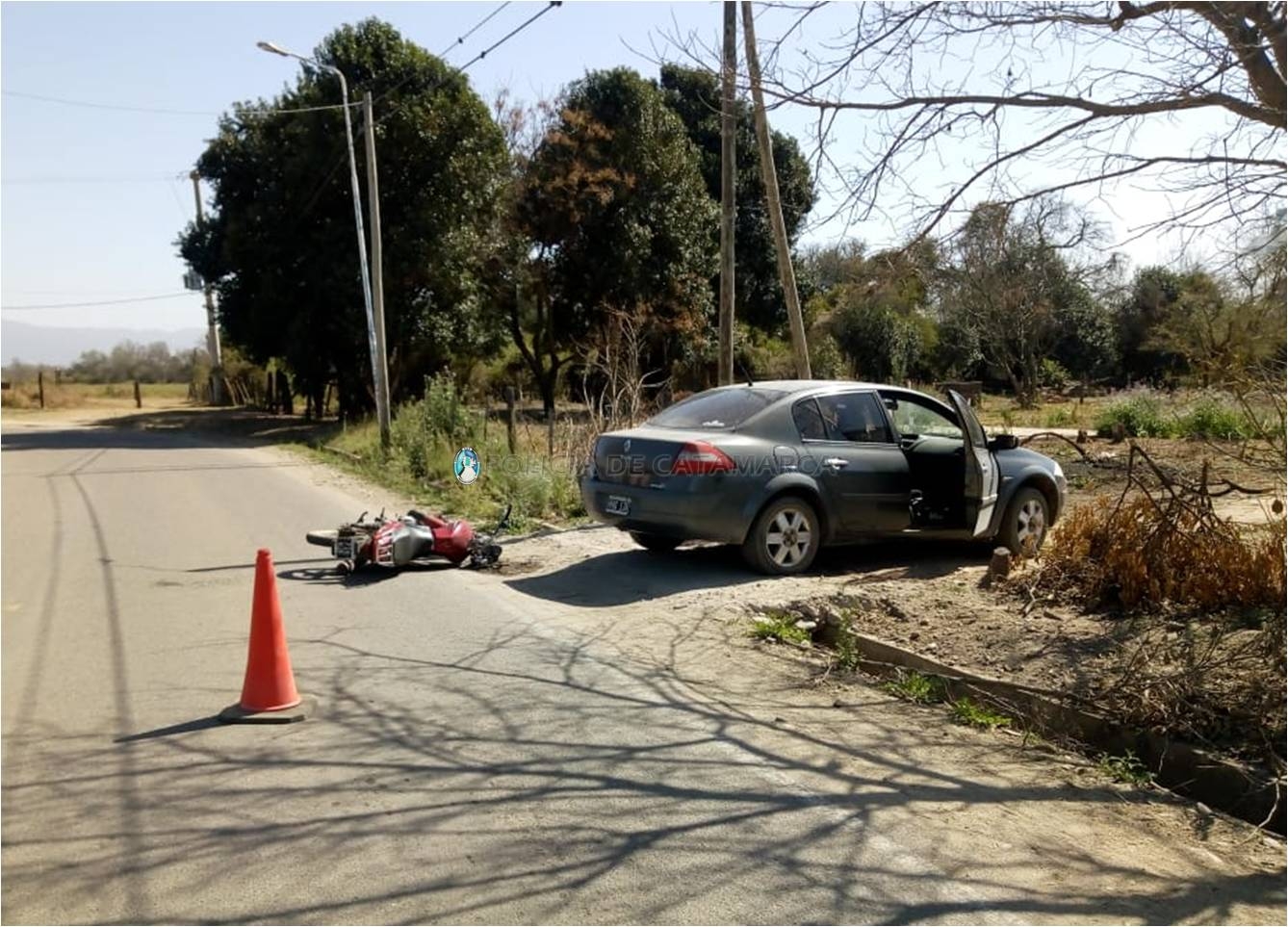 Eduardo Exequiel Víctor (27) circulaba en un automóvil Renault Megane gris, dominio HHQ-136 y, por motivos que se investigan, colisionó con una motocicleta Appia 150 cc., dominio 726-HJF, de color rojo, en la que circulaba un adolescente de 17 años, quien fue asistido por personal médico del Hospital Zonal.
