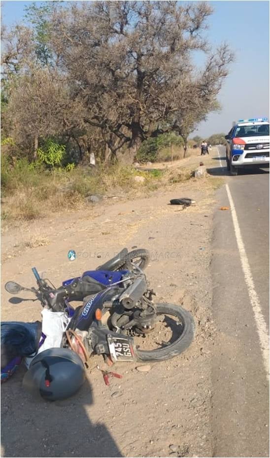 El accidente fue protagonizado por una motocicleta Yamaha Crypton 110 cc., dominio 745-GSU, de color azul, al mando de Agustina Gimena Moreno (19), quien por motivos que son materia de investigación, perdió el control del rodado y chocó contra un cartel de señalización vial, sufriendo lesiones que demandaron la asistencia de facultativos médicos de la posta sanitaria de la localidad de Concepción, quienes la trasladaron al Hospital San Juan Bautista de la Capital.
